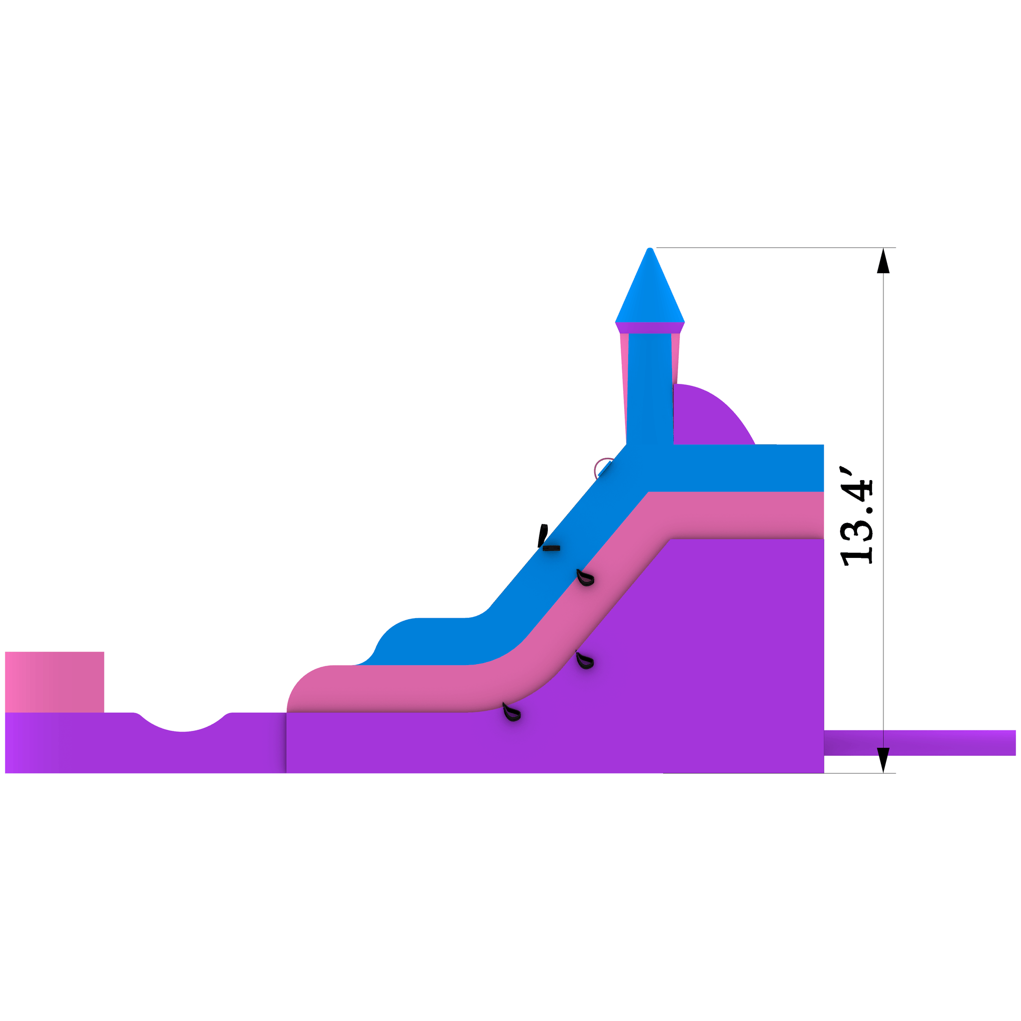 Slide into summer with this 12' tall BouncyHop inflatable water slide with a builtin pool / landing mat. This inflatable Water slide is both functional and fun. At 140 LBS, rental grade tough vinyl is 5 times stronger than nylon units others have. This unit will be ready to use wet or dry - just hook up your water hose to the misting system and start enjoying the fun!